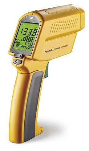 | More demanding applications require more precise measurement and specialized features. That's when predictive maintenance professionals reach for the Fluke 570 series. An even wider temperature range, more powerful optics, a more precise sighting system, faster response time and adjustable emissivity make the 570 series the most accurate IR thermometer on the market. Advanced sighting An extra bright coaxial three-dot laser sighting highlights the center and diameter of the measurement spot. The laser sighting appears twice as bright to the human eye as a standard laser sighting (while maintaining the same safety rating as less bright lasers), making accurate sighting easier in a variety of lighting conditions and distances. Additional features of the 574 For maintenance professionals who need to monitor, capture, analyze and report temperatures and temperature trends, the 574 comes with 100-point onboard data logging capabilities, customizable log location names, programmable emissivity settings and PC software for condition monitoring and process control. Nonincendive (574-NI) |