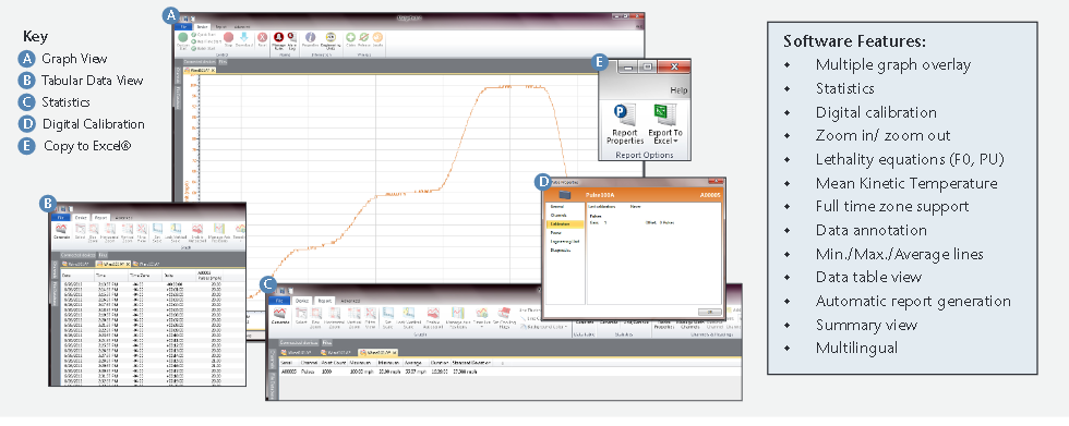The Pulse101A data logger can measure and record data for up to 500,000 readings and the storage medium is non-volatile, solid state memory, providing maximum data security even if the battery becomes discharged. The device can be started and stopped directly from a computer using our user-friendly software.