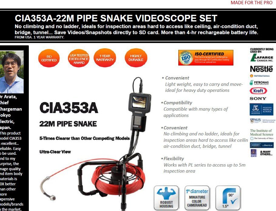 PIPE SNAKE 22M WATER-RESISTANT 3.5" LCD PIPE/DUCT VIDEOSCOPE NDT STANDARD SET
