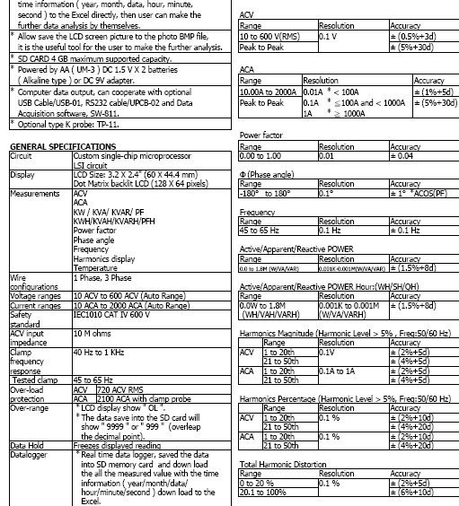 - Cables to 57mm 10amps to 2000amps autorange