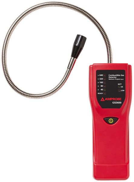 The Amprobe GSD600 is a fast responding gas leak detector for methane and propane gas. The meter emits a frequency tone when gas is detected. The frequency of the beep coincides with the concentration of the gas. The LEDs display the level of gas present in an area or room. Pinpoint gas leaks for closed piping systems. Use the mute function in quiet work areas and utilize the LED displays. Or a standard earphone jack for hearing the meter in loud environments.