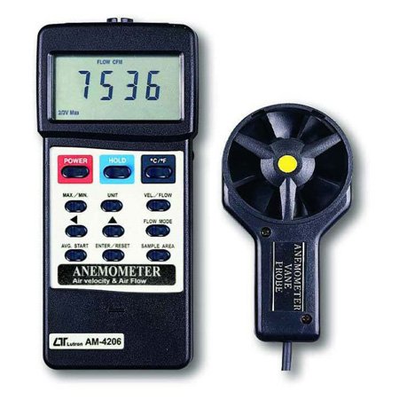 FEATURES * Air flow : CMM (m^3/min.) and CFM (ft^3/min.) * Air velocity : m/s, ft/min, km/h, knots. * Air temperature : ℃, ℉. * 3 air flow mode : Instant, 2/3 Vmax, Average. * Low-friction ball vane wheels is accurate in both high & low velocities. * Large LCD with dual display. * Record max. and min. reading value. * Data hold. * Microcomputer circuit. * Thermistor sensor for temp. measurement, fast response time. * RS 232 PC serial interface. * Separate probe, easy for operation of the different measurement environment.